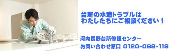 河内長野台所修理センターは河内長野市の台所修理専門業者です。台所蛇口の水漏れ、排水口の流れが悪い、パイプから水漏れしているなどお気軽にお問い合わせください。